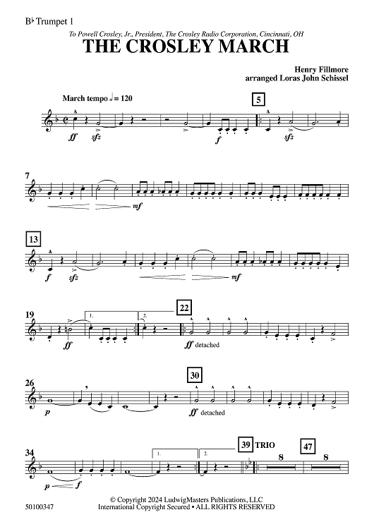 Digital Sheet Music for The Crosley March - Bb Trumpet 1 by Henry Fillmore, Loras John Schissel scored for Concert Band; id:505026