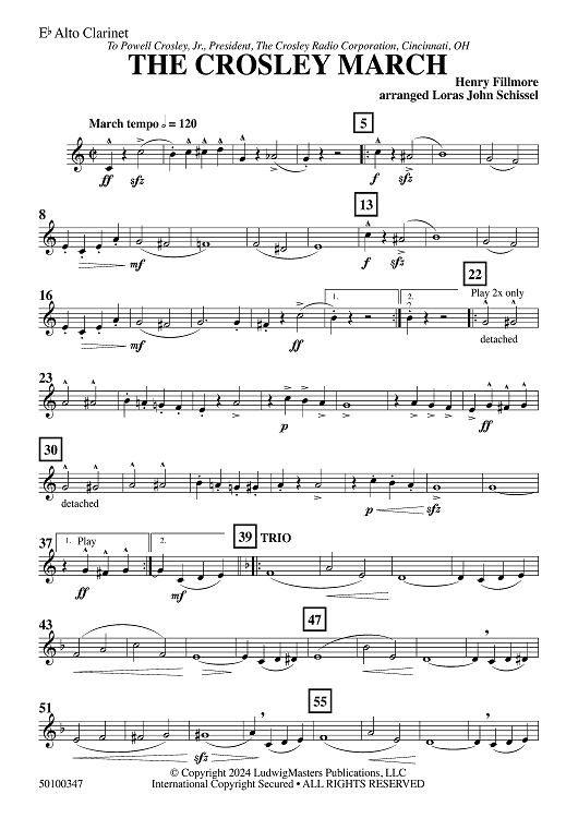 "The Crosley March - Eb Alto Clarinet" Sheet Music by Henry Fillmore