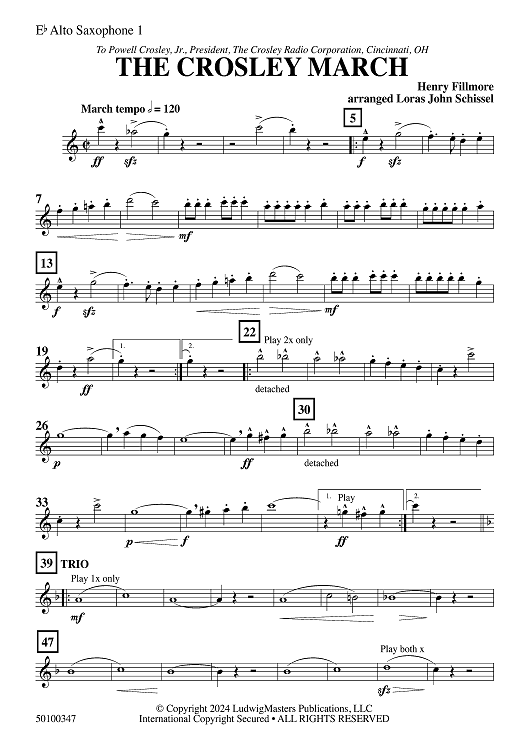 Digital Sheet Music for The Crosley March - Eb Alto Sax 1 by Henry Fillmore, Loras John Schissel scored for Concert Band; id:505020