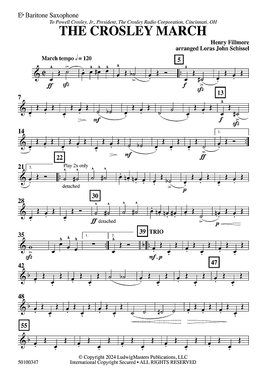 Digital Sheet Music for The Crosley March - Eb Baritone Sax by Henry Fillmore, Loras John Schissel scored for Concert Band; id:505023