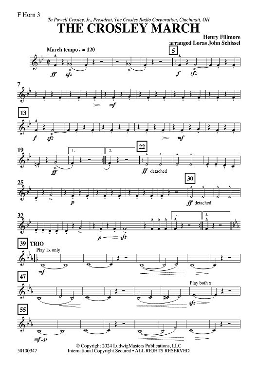 Digital Sheet Music for The Crosley March - F Horn 3 by Henry Fillmore, Loras John Schissel scored for Concert Band; id:505030