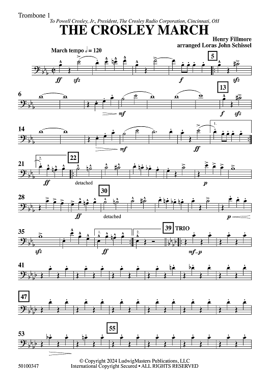 Digital Sheet Music for The Crosley March - Trombone 1 by Henry Fillmore, Loras John Schissel scored for Concert Band; id:505032