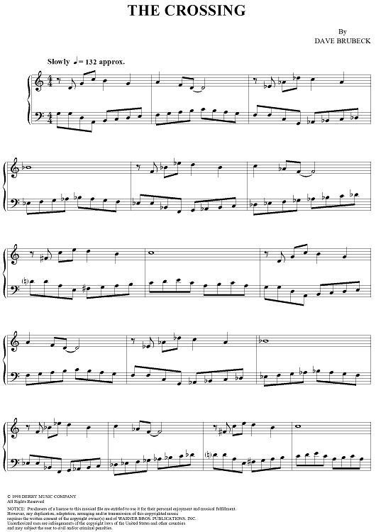 Digital Sheet Music for The Crossing by Dave Brubeck scored for Piano Solo; id:275844