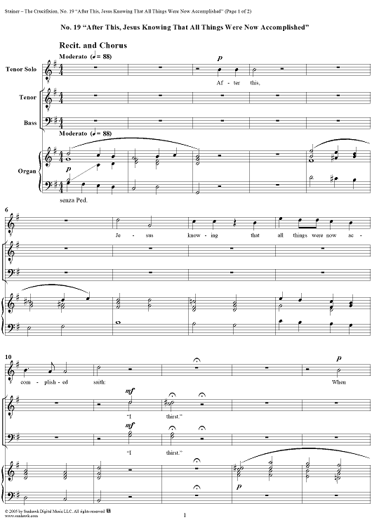 Digital Sheet Music for The Crucifixion: No. 19, After This, Jesus Knowing That All Things Were Now Accomplished by John Stainer scored for Four-part Mixed Chorus; id:304726