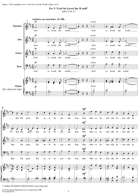 Digital Sheet Music for The Crucifixion: No. 9, God So Loved the World by John Stainer scored for Four-part Mixed Chorus; id:304716