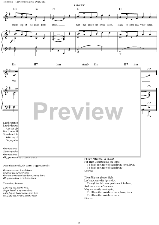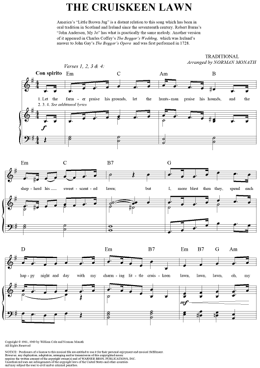 Digital Sheet Music for The Cruiskeen Lawn by Norman Monath, Traditional scored for Piano/Vocal/Chords; id:260845