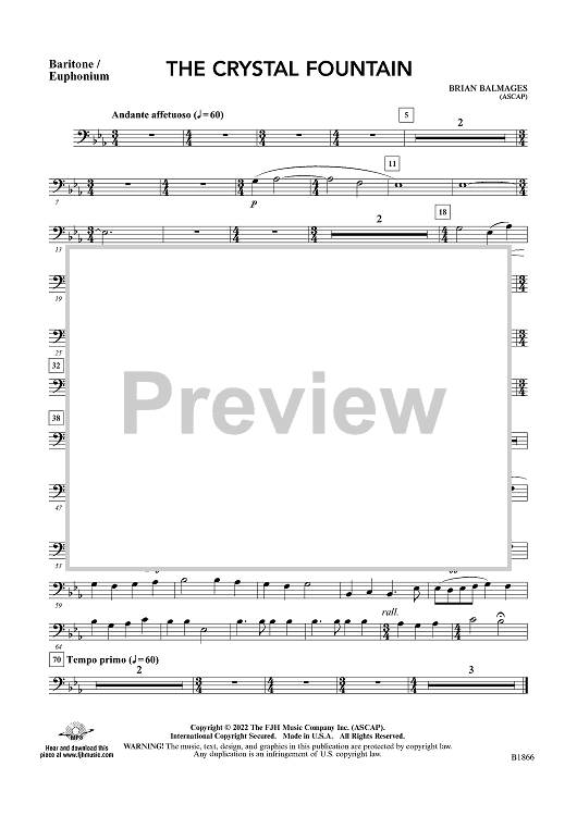 "The Crystal Fountain - Baritone / Euphonium" Sheet Music by Brian Balmages