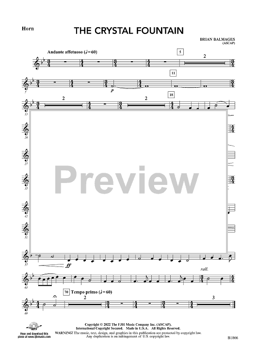 "The Crystal Fountain - Horn" Sheet Music by Brian Balmages