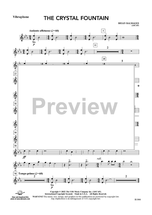Digital Sheet Music for The Crystal Fountain - Vibraphone by Brian Balmages scored for Concert Band; id:498351