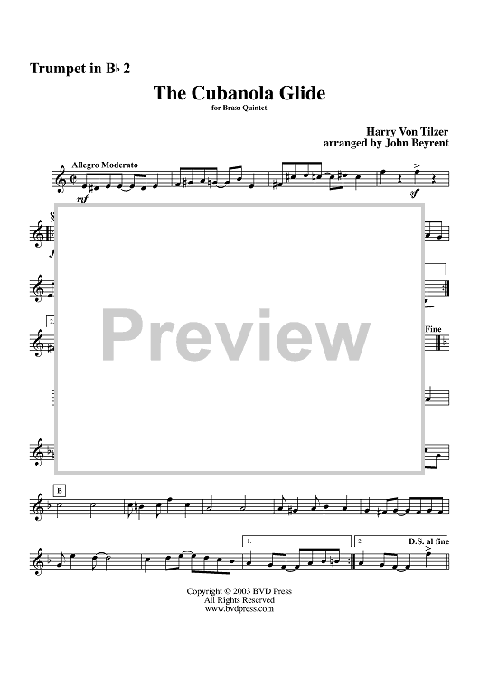 Digital Sheet Music for The Cubanola Glide - Trumpet 2 by Harry Tilzer, John Beyrent scored for Brass Quintet; id:315811