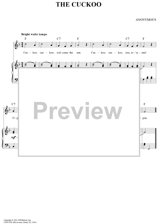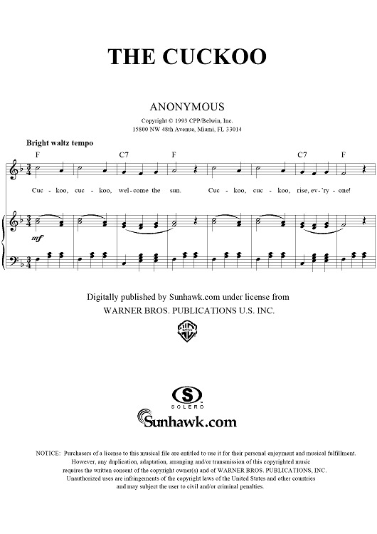 Digital Sheet Music for The Cuckoo by Unknown Writer scored for Piano/Vocal/Chords; id:277362