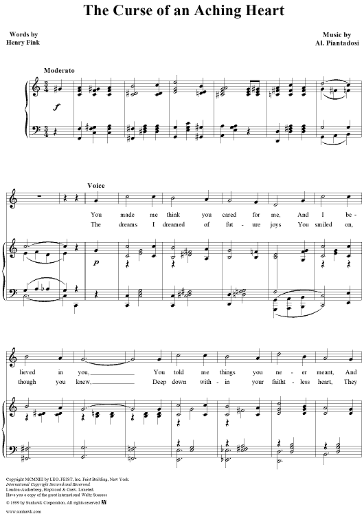 Digital Sheet Music for The Curse of an Aching Heart by Al Piantadosi scored for Piano/Vocal; id:251026