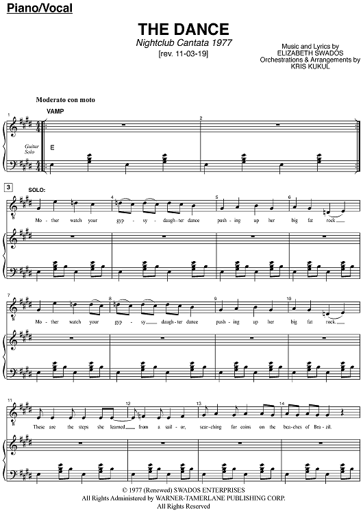 Digital Sheet Music for The Dance by Elizabeth Swados, Kris Kukul scored for Piano/Vocal/Chords; id:469456