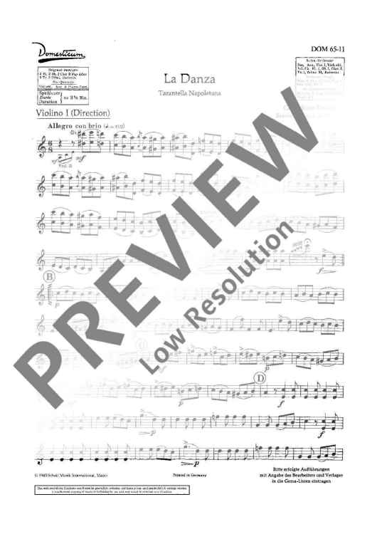 Digital Sheet Music for The Dance - Violin I by Gioacchino Antonio Rossini scored for Salon Orchestra; id:488171