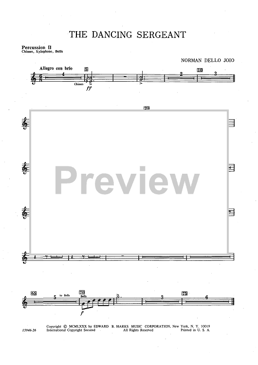 Digital Sheet Music for The Dancing Sergeant - Percussion 2 by , Norman Dello Joio scored for Concert Band; id:426548