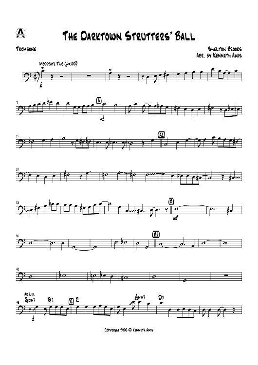 Digital Sheet Music for The Darktown Strutters' Ball - Trombone by , Shelton Brooks, Kenneth Amis scored for Brass Quintet; id:363023