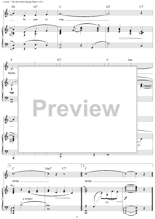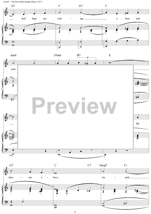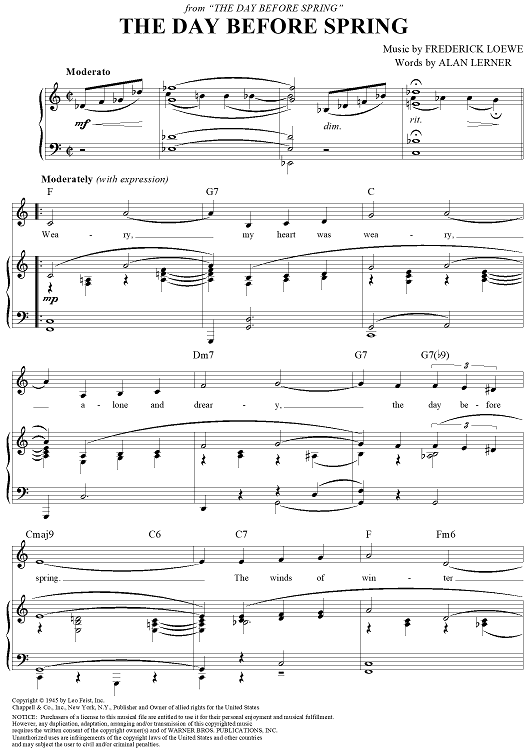 Digital Sheet Music for The Day Before Spring by Frederick Loewe, Alan Jay Lerner scored for Piano/Vocal/Chords; id:314329
