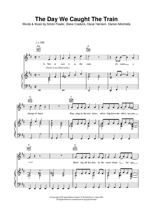 Digital Sheet Music for The Day We Caught The Train by Steve Cradock, Simon Fowler, Oscar Harrison, Damon Minchella, Ocean Colour Scene scored for Piano/Vocal/Chords; id:379736