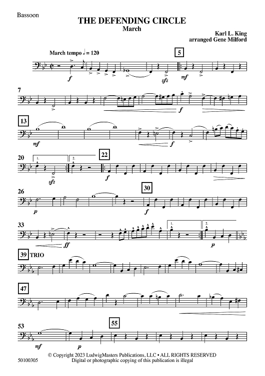 Digital Sheet Music for The Defending Circle - Bassoon by Gene Milford, Karl King scored for Concert Band; id:509200