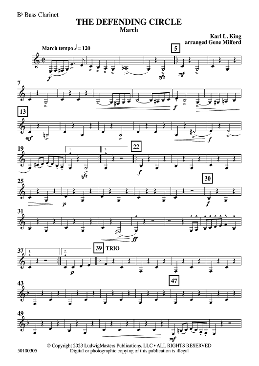 Digital Sheet Music for The Defending Circle - Bb Bass Clarinet by Gene Milford, Karl King scored for Concert Band; id:509204