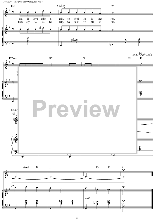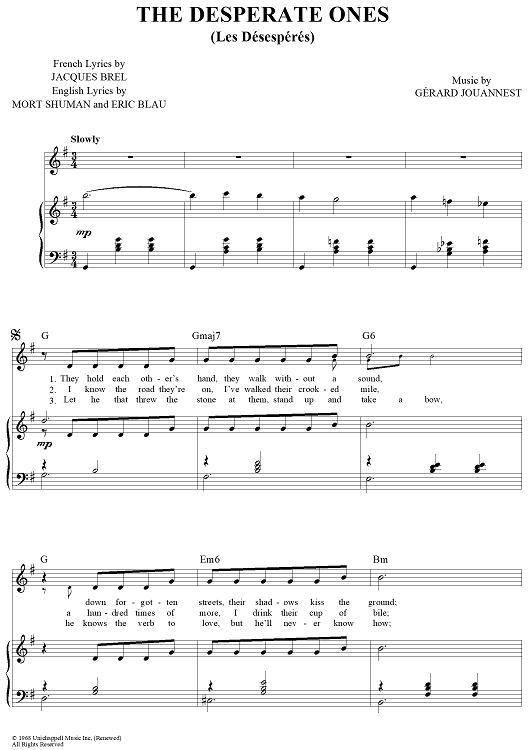 Digital Sheet Music for The Desperate Ones (Les Désespérés) by Jacques Brel, Gerard Jouannest scored for Piano/Vocal/Chords; id:431611