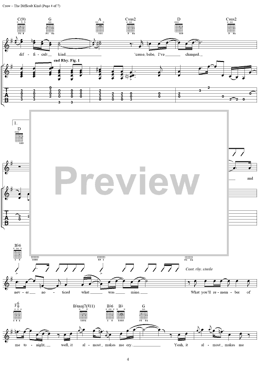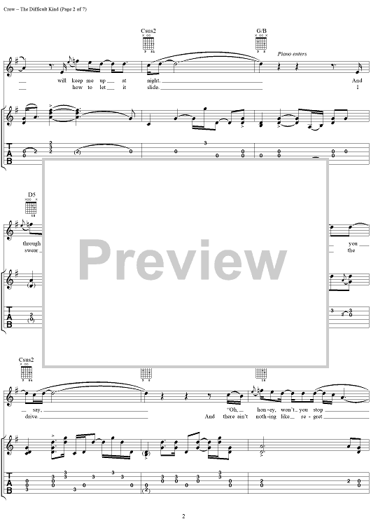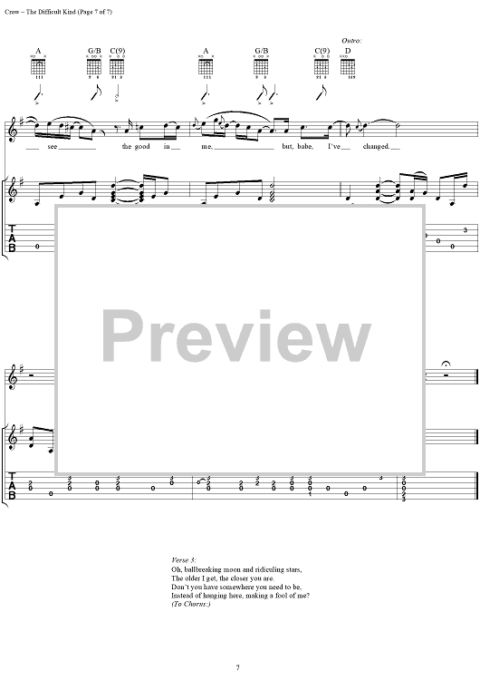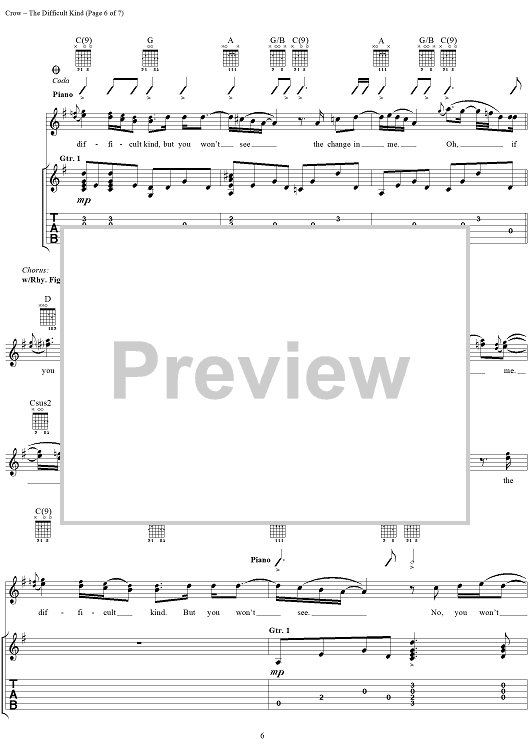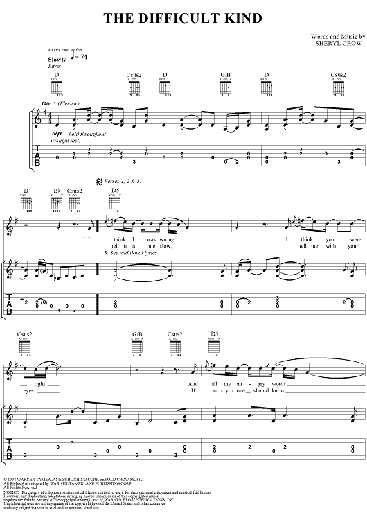 Digital Sheet Music for The Difficult Kind by Sheryl Crow scored for Guitar Tab/Vocal; id:118848