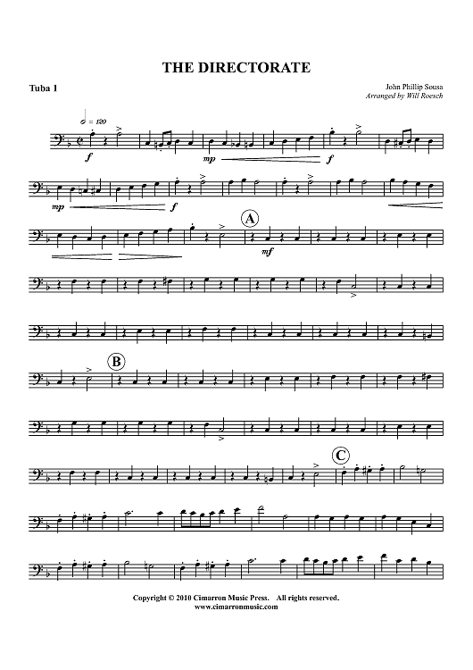 Digital Sheet Music for The Directorate - Tuba 1 by John Philip Sousa, Will Roesch scored for Tuba Quartet; id:426786
