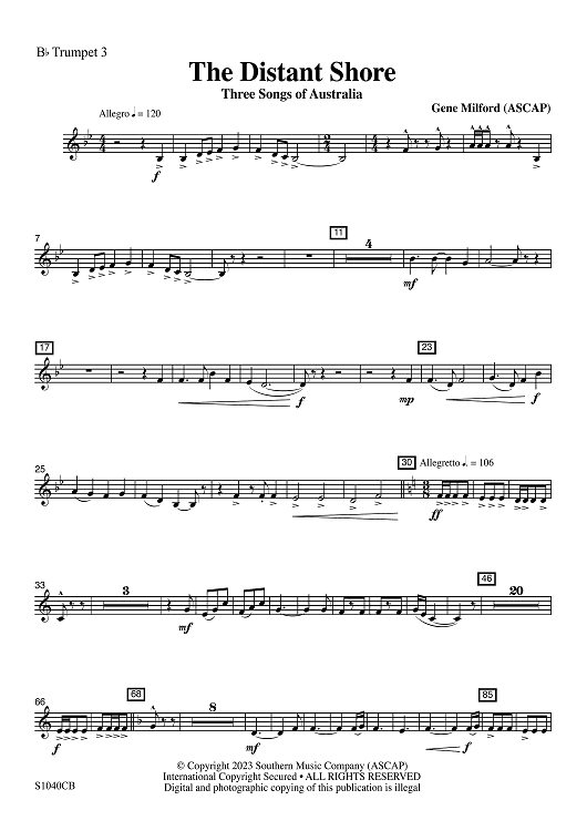 "The Distant Shore - Bb Trumpet 3" Sheet Music by Gene Milford