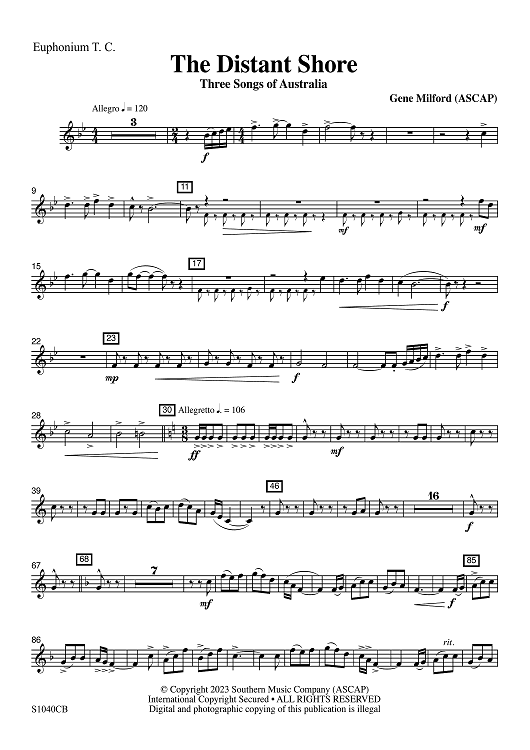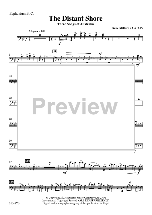 Digital Sheet Music for The Distant Shore - Euphoniums TC/BC by Gene Milford scored for Concert Band; id:508600