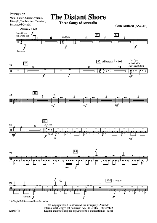 Digital Sheet Music for The Distant Shore - Percussion by Gene Milford scored for Concert Band; id:508607