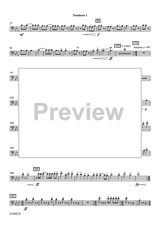 Digital Sheet Music for The Distant Shore - Trombone 1 by Gene Milford scored for Concert Band; id:508597