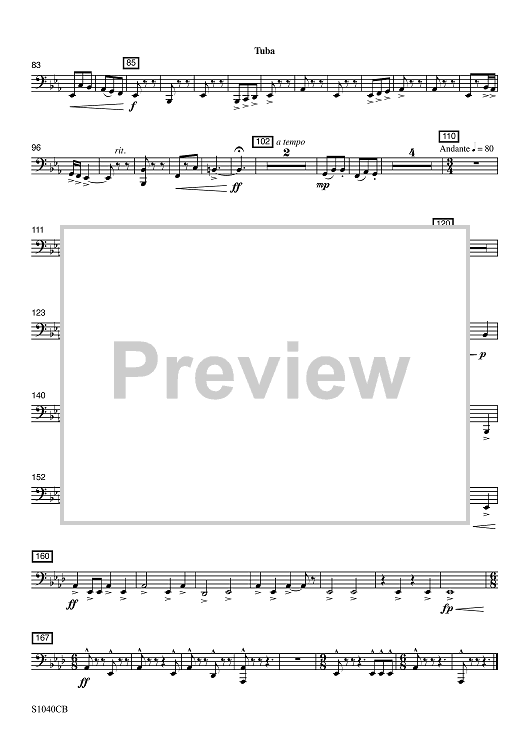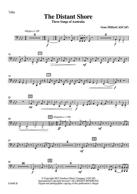 Digital Sheet Music for The Distant Shore - Tuba by Gene Milford scored for Concert Band; id:508601