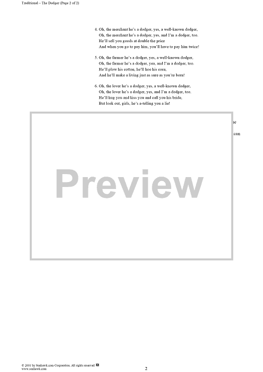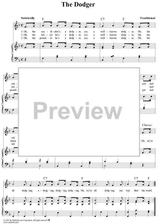 Digital Sheet Music for The Dodger by Traditional scored for Piano/Vocal/Chords; id:260703