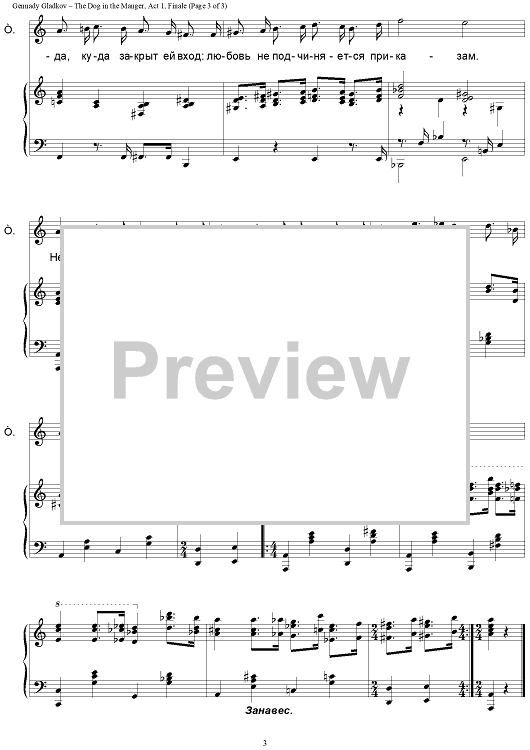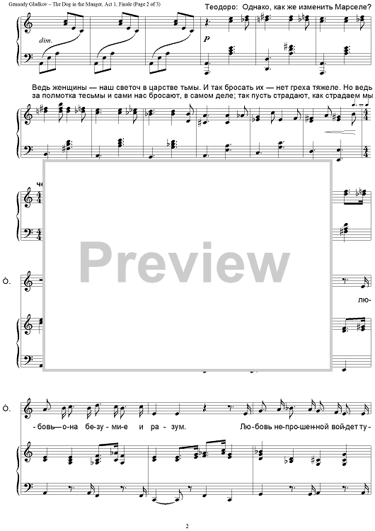 "The Dog in the Manger. Act 1. Finale" Sheet Music by Gennady Gladkov
