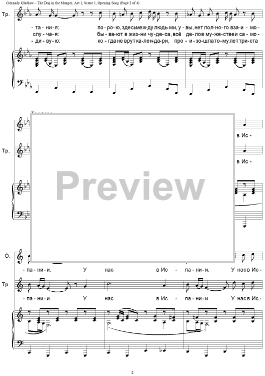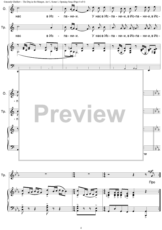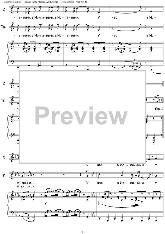 "The Dog in the Manger. Act 1. Scene 1. Opening Song" Sheet Music by Gennady Gladkov