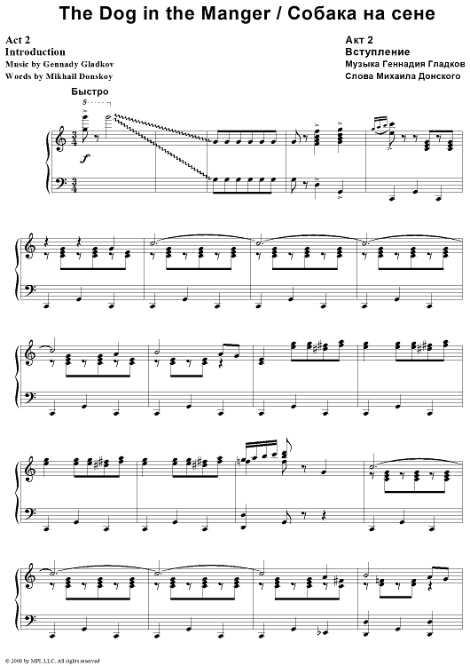 "The Dog in the Manger. Act 2. Introduction" Sheet Music by Gennady Gladkov