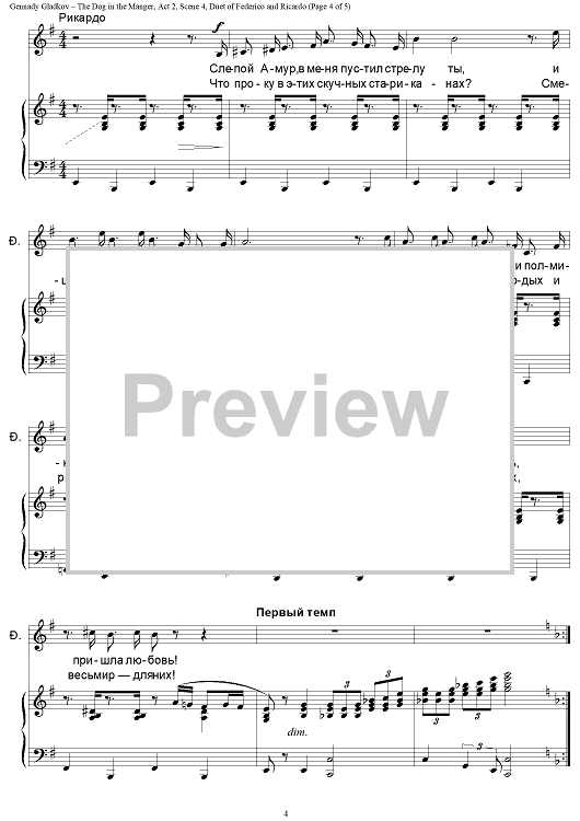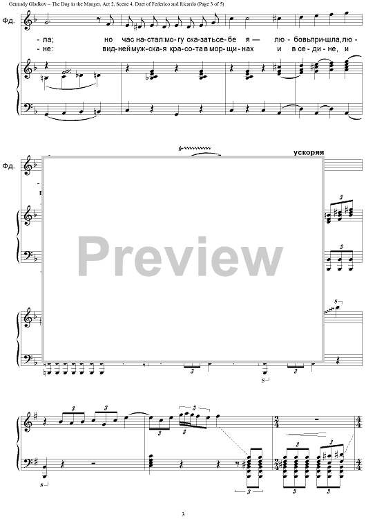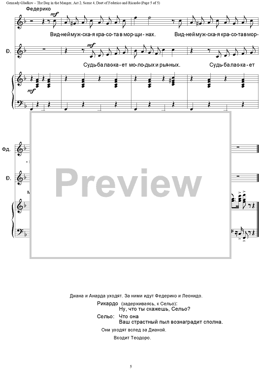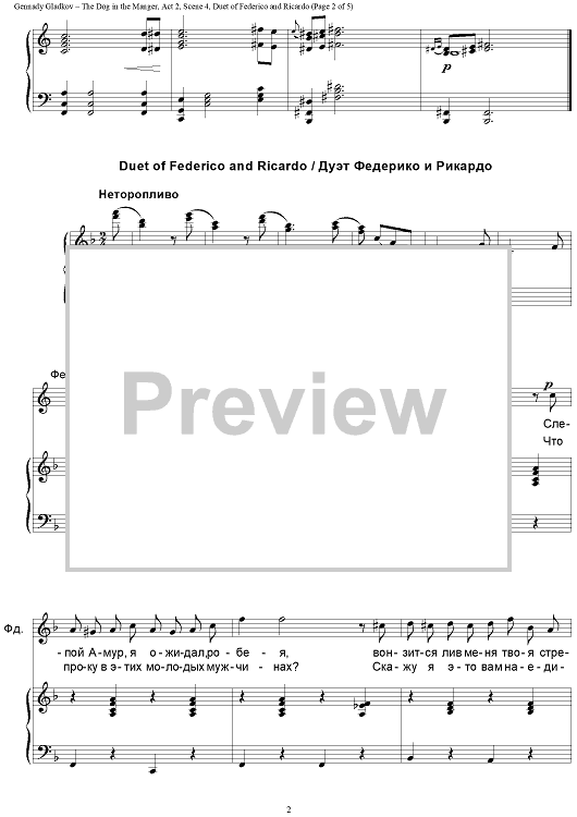 "The Dog in the Manger. Act 2. Scene 4. Duet of Federico and Ricardo" Sheet Music by Gennady Gladkov