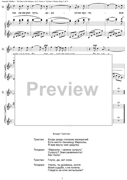 "The Dog in the Manger. Act 2. Scene 4. Teodoro’s Dream" Sheet Music by Gennady Gladkov
