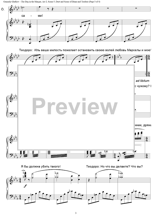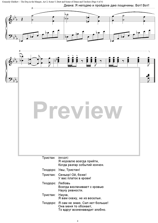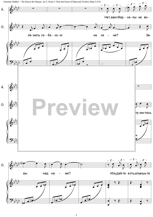 "The Dog in the Manger. Act 2. Scene 5. Duet and Scene of Diana and Teodoro" Sheet Music by Gennady Gladkov