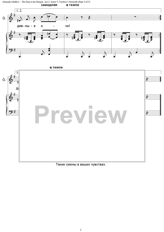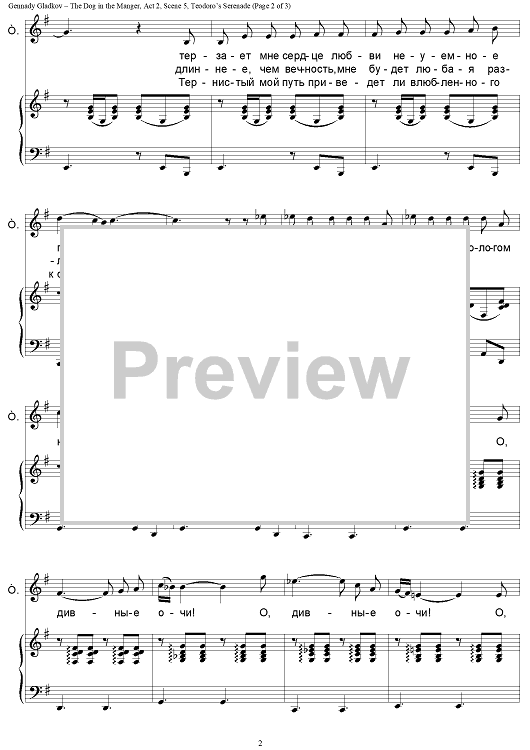 "The Dog in the Manger. Act 2. Scene 5. Teodoro’s Serenade" Sheet Music by Gennady Gladkov