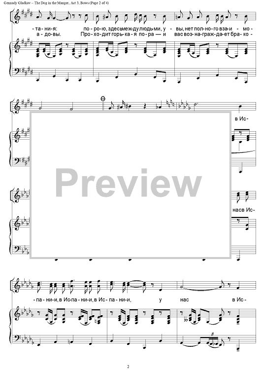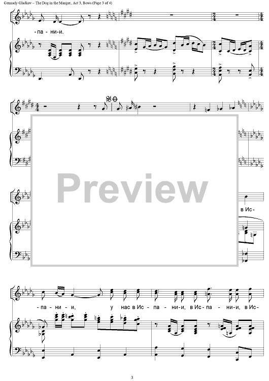 "The Dog in the Manger. Act 3. Bows" Sheet Music by Gennady Gladkov