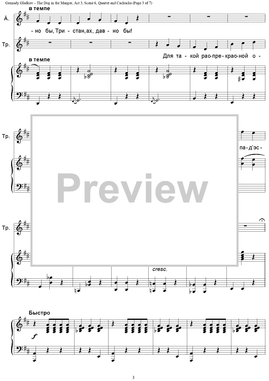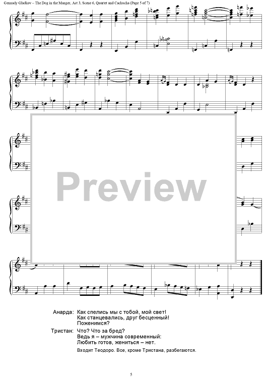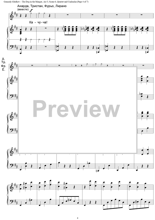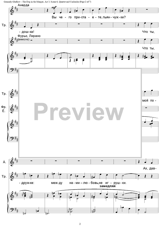 "The Dog in the Manger. Act 3. Scene 6. Quartet and Cachucha" Sheet Music by Gennady Gladkov