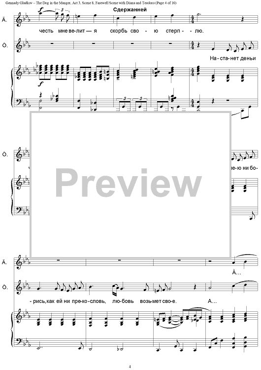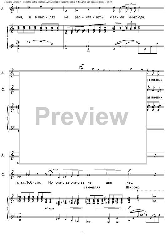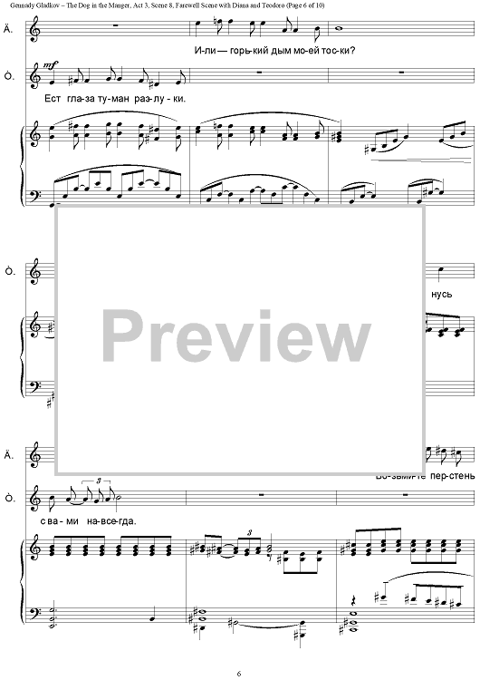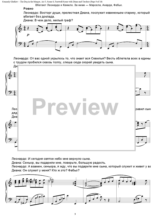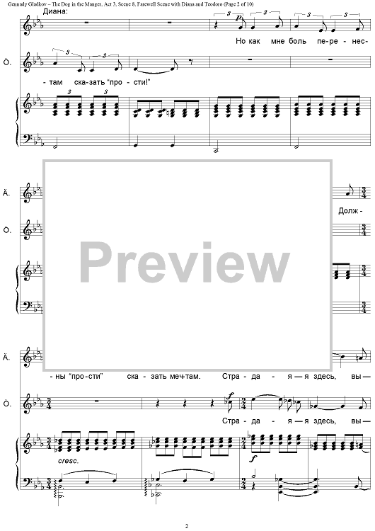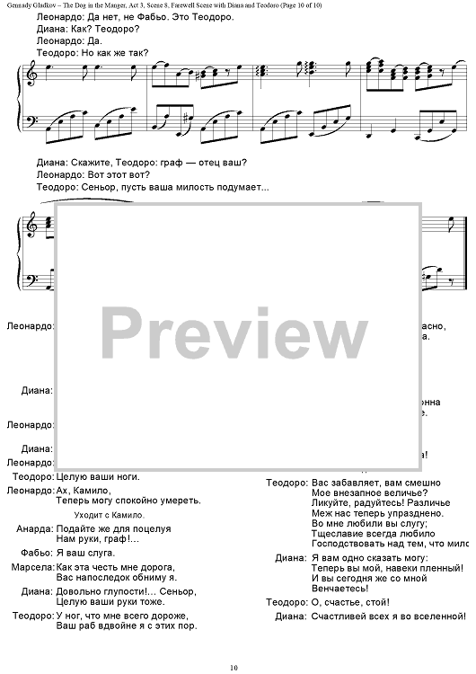 "The Dog in the Manger. Act 3. Scene 8. Farewell Scene with Diana and Teodoro" Sheet Music by Gennady Gladkov