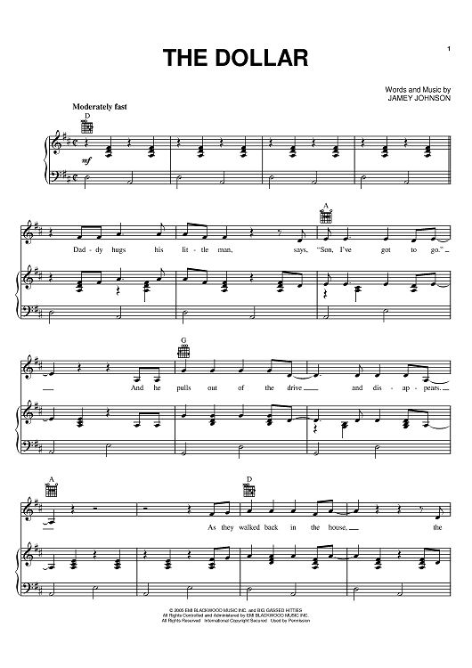 Digital Sheet Music for The Dollar by Jamey Johnson scored for Piano/Vocal/Chords; id:388965