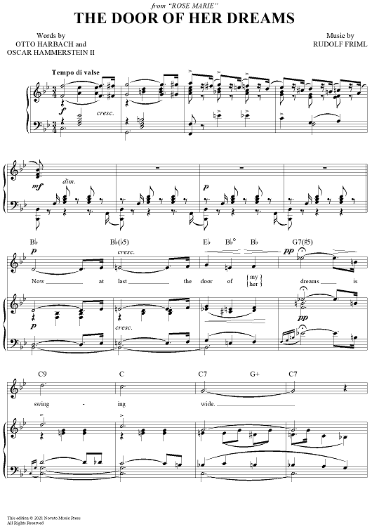 Digital Sheet Music for The Door of Her Dreams by Oscar Hammerstein II, Otto Harbach, Rudolf Friml scored for Piano/Vocal/Chords; id:362797