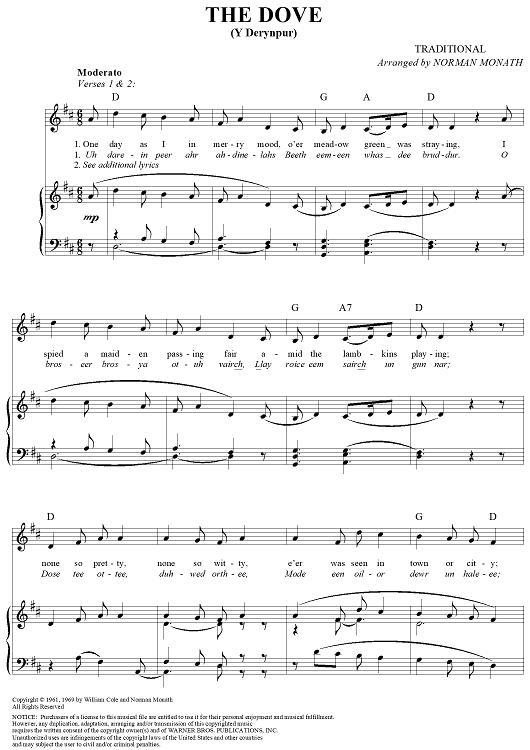 Digital Sheet Music for The Dove by Norman Monath, Traditional scored for Piano/Vocal/Chords; id:260705