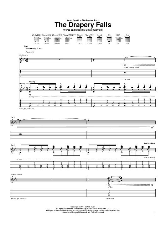 Digital Sheet Music for The Drapery Falls by Mikael Akerfeldt, Opeth scored for Guitar Tab; id:397965