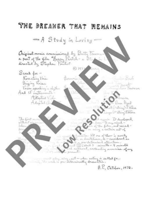 "The Dreamer that Remains - Full Score" Sheet Music by Harry Partch