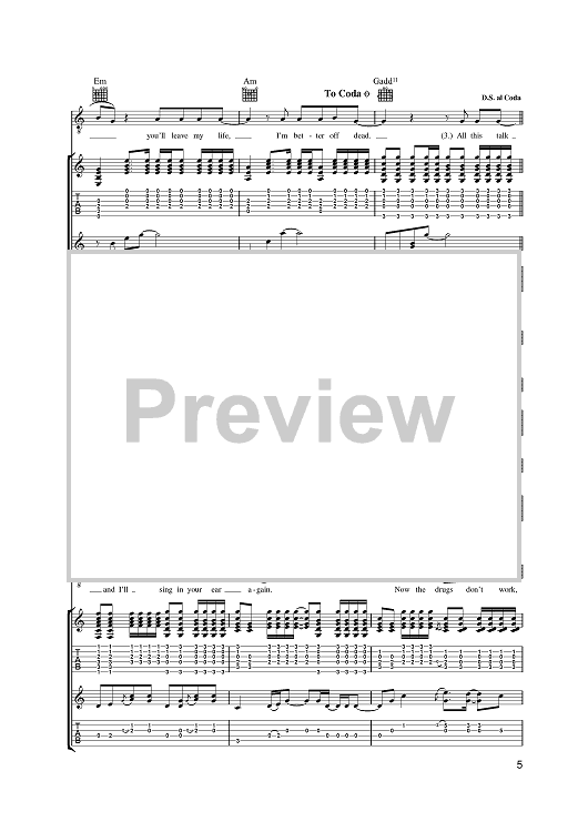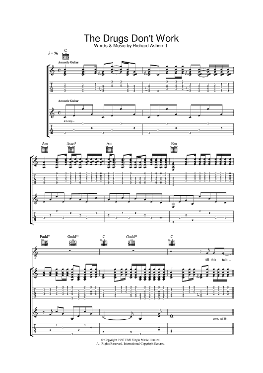 Digital Sheet Music for The Drugs Don't Work by Richard Ashcroft, The Verve scored for Guitar Tab; id:387838
