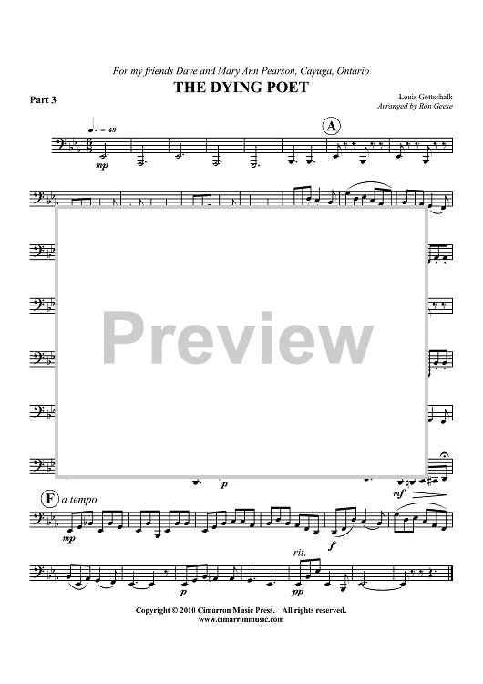 Digital Sheet Music for The Dying Poet - Part 3 by Louis Moreau Gottschalk, Ron Geese scored for Low Brass Trio; id:426934